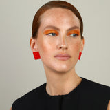 Bau square - stud earrings with enamel - red