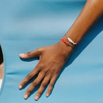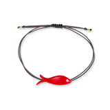 The element is made of brass coated with enamel and a crystal zirgon stone is placed on it. The thread of the bracelet is made of synthetic silk.