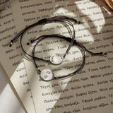 The bracelet is made of silver 925 plated. The thread of the bracelet is made of synthetic silk.