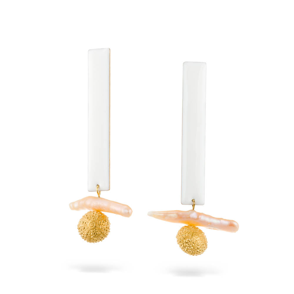 Urban muse – earrings - white enamel – silver 925 – gold plated